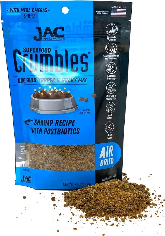 JAC Dog Food Topper and Gravy Mix – Air Dried Shrimp with Postbiotics, Meal Enhancement Dog Food (Approximately 30 Servings) Made in The USA